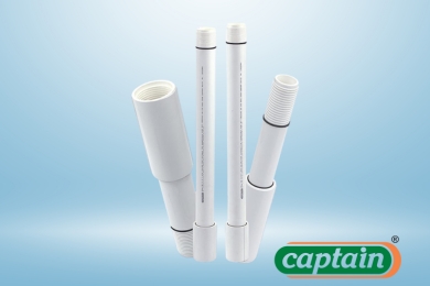 Exclusive Cyprus distributor for Captain Pipes UPVC column pipes and fittings. High-quality pipes rated up to 45 bar and suitable for boreholes down to 1500 feet, designed for long-life submersible pump installations.
