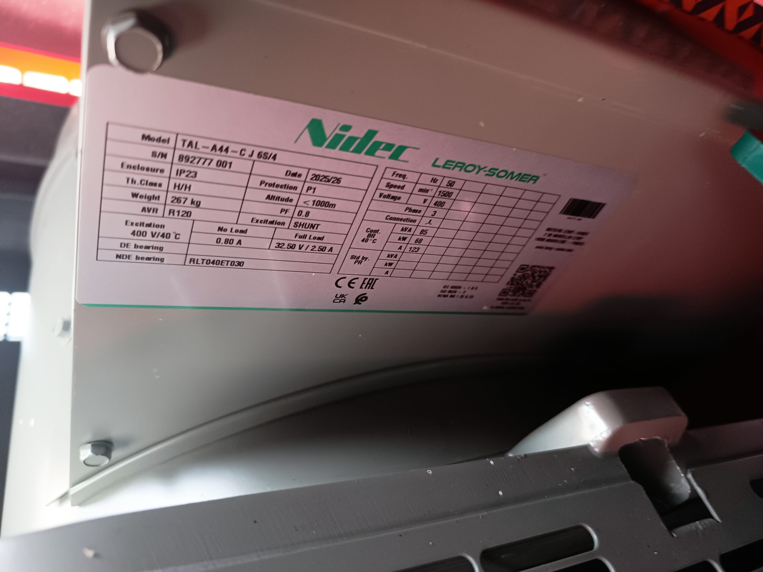 - Alternator: Leroy Somer TAL-A44-C (brushless, self-exciting)